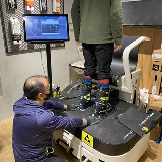 フィッシャー専属のブーツフィッターにより、バキュームステーションで計測、加熱、足入れ、成型、冷却し固めるというプロセスを経て、フィット感の高いブーツを成型する。