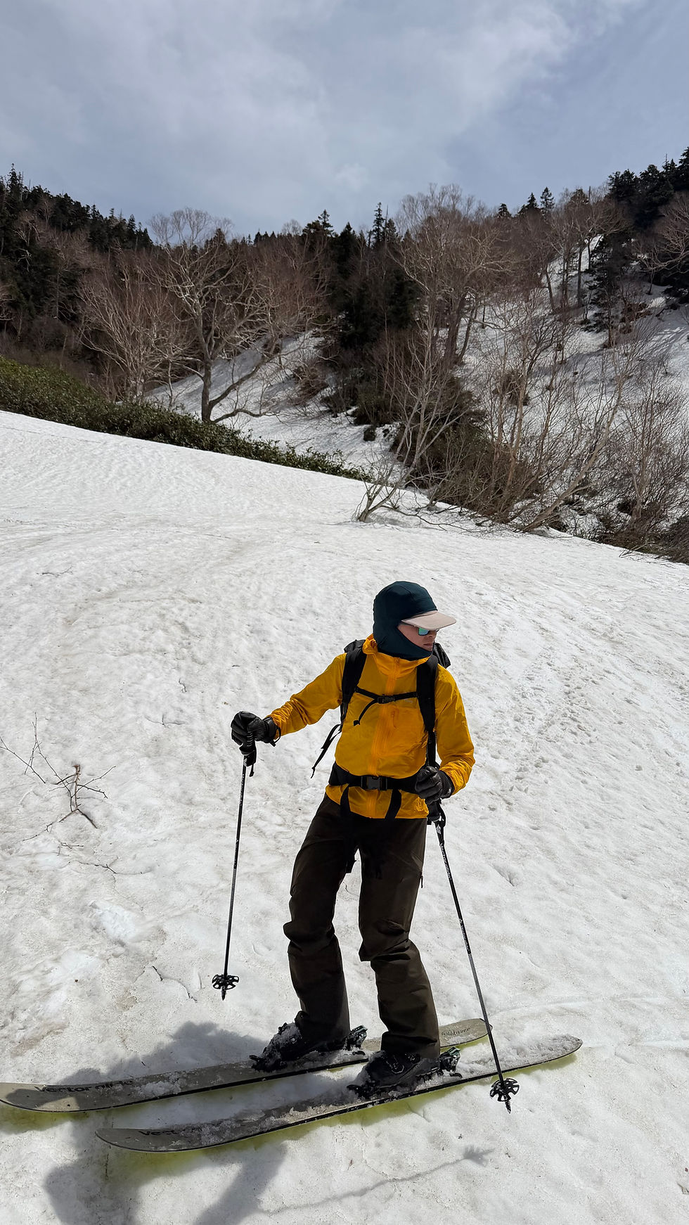 里奈が立つこの緩やかな斜面も、雪が無くなれば密度の濃い猛烈なチシマ笹のヤブだ。