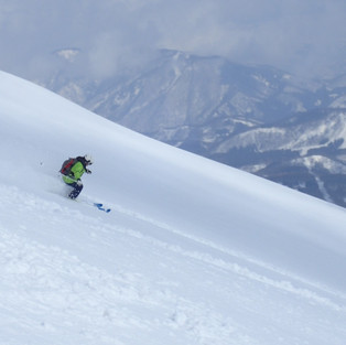 2本目はドライな北面を滑りましたが、皆さん疲れが出て?かなりまとまりがなく、良い写真はほとんどなし(笑)。